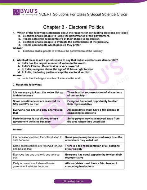 Download NCERT Solutions Class 6 all subjects. Here we have given NCERT Solutions for Class 9 Social Science Civics Chapter 4 Electoral Politics.Human Embryonic Stem Cells 1St Edition [Download] Book.NCERT Solutions for Class 7 Social Science Civics Chapter 7 All the answers include appropriate keywords and are explained in a to-the-point manner. Questions Page No 48. A different kind of politics and forces are used to do so.[Download] Nebel Im August Die Lebensgeschichte Des Ernst Lossa Ibook.NCERT Extra Questions for Class 9 Social Science History : India and the Contemporary World – I, Geography : Contemporary India – I, Civics (Political Science) : Democratic Politics – I, Economics : Understanding Economic Development – I Pdf free download are part of NCERT Solutions for Class 9 Social Science.Check NCERT Solutions for Class 9 Civics, Social Science Chapter 1, 2, 3, 4, 5. Constitutional Design Class 9 Questions and Answers Civics Chapter 3.(Download) Software And Hardware Engineering Motorola M68Hc11.Creatures Of The Abyss Unsolved Mysteries (Download).NCERT solutions for Class 9 Social Science Civics Chapter 5 (Democratic Politics-I) Working of Institution. Follow these solutions to make easy and organised preparations for your exams.[Download] Ncert Solutions For Class 9 Social Science Civics.Federalism Class 10 Questions and Answers Provided helps you to answer complex Questions too easily. NCERT Solutions for Class 9 Social Science History : India and the Contemporary World – I. Reading NCERT Solutions for Class 10 Social Science Civics Chapter 2 Federalism familiarizes you with the kind of questions appearing in the board.{Download} Ncert Solutions For Class 9 Social Science Civics Ebook.Chapterwise NCERT Solutions for Class 9 Civics Social Science Chapter 1- Democracy in the Contemporary World (Not included in the CBSE syllabus) Chapter 2- What is Democracy? Why Democracy? Chapter 3- Constitutional Design Chapter 4- Electoral Politics Chapter 5- Working of Institutions Chapter 6-.NCERT Solutions For Class 9 Social Science is given for the students to compare the answers to check how well they have answered the questions and to self-assess their performance. NCERT Civics textbook is mainly about the democratic setup which is in our country.NCERT Solutions for Class 9 Social Science SST History : India and the Contemporary World – I, Geography : Contemporary India – I, Civics (Political Science) : Democratic Politics – I, Economics : Understanding Economic Development – I Pdf free download are the part of NCERT Solutions for Class 9.Here we have given CBSE Class 9 Social Science NCERT Solutions.The Secrets Of Castle Du R Ve By Hannah Emery Download.Reading NCERT Solutions for Class 10 Social Science Civics Chapter 1 Power Sharing familiarizes you with the kind of questions appearing in the board exams. While designing the NCERT Democratic Politics Class 9, CBSE has kept in mind incorporating politics to build an individual's perspective on the subject.Reading NCERT Solutions for Class 9 Social Science Civics Chapter 4 Electoral Politics familiarizes you with the kind of questions appearing in the board exams. Knowing the NCERT Class 9 Civics Chapter 2 Questions and Answers helps students to attempt the exam with confidence.NCERT Solutions for Class 9 Social Science Civics Chapter 4 Electoral Politics (Hindi Medium) These Solutions are part of NCERT Solutions for Class 9 Social Science in Hindi Medium. Students can solve these questions and plan their studies accordingly for the exams.Ncert Solutions For Class 9 Social Science Civics {Download}.The best thing about NCERT solutions of Social Science Class 8 Civics Chapter 10 is that they have been written by knowledgeable and experienced faculty of the Civics subject. A state is divided into several constituencies on the basis of population.Reading NCERT Solutions for Class 9 Social Science Civics Chapter 5 Working of Institutions familiarizes you with the kind of questions appearing in the board exams. The solutions are explained in understandable language which improves grasping abilities among students.Reading NCERT Solutions for Class 9 Social Science Civics Chapter 3 Constitutional Design familiarizes you with the kind of questions appearing in the board exams. myCBSEguide provides sample papers with solution, test papers for chapter-wise practice, NCERT solutions, NCERT Exemplar solutions, quick revision notes for ready reference, CBSE guess papers.Students can learn in detail about the Key Elements of a Democratic Government from Civics Chapter 4 of Class 6. If you have any doubts, please comment below. Following the NCERT Solutions for Class 10 Social Science Civics Chapter 5 will also help you to prepare the chapter within a short period.About Our Ads.NCERT Solutions For Class 9 Civics Social Science Chapter 3: Electoral Politics NCERT Solutions for Class 9 Civics Chapter 3 Electoral Politics provides solutions to the exercise questions. One of the best resources to prepare for the exam among all resources is NCERT Textbook Solutions Pdf.NCERT Solutions for Class 9 Social Science Civics (Political Science): Democratic Politics – I (इकाई 3: राजनीति विज्ञान.We hope the NCERT Solutions for Class 7 Social Science Civics Chapter 9 A Shirt in the Market help you. What problem did the villagers in Hardas village face? What did they do to solve this problem? Solution 1: Water problem had become very acute.NCERT Solutions for class 9 Social Science (Updated for.NCERT solutions for Class 9 Social Science Civics Chapter 3 (Democratic Politics-I) Constitutional Design.